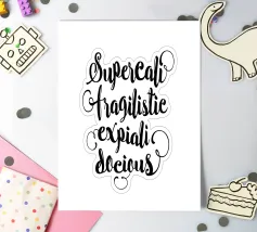 Spruzzate un po' di magia nel vostro spazio con la nostra stravagante stampa tipografica "Supercalifragilisticexpialidocious Super Cali". Questa frase iconica di Mary Poppins, elegantemente resa in una vorticosa calligrafia nera su uno sfondo bianco immacolato, cattura lo spirito incantevole dell'amato classico. Il design giocoso aggiunge un tocco di fascino Disney a qualsiasi ambiente, perfetto per le camerette, le stanze dei giochi o la casa di qualsiasi appassionato di Poppins. Disponibile su diversi prodotti, questa opera d'arte versatile è un regalo delizioso per i fan di tutte le età.