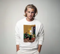 Tra l'ombra e la luce del sole cala un silenzio in cui lei si adagia con tranquilla eleganza, con un martini in mano e un gatto dagli occhi di velluto come compagnia. Il mondo ronza altrove, ma qui - tra i cuscini color menta e le pareti arrossate - la quiete sa di lime e mistero. È un momento distillato in verde e nero: fresco, curioso e completamente suo.