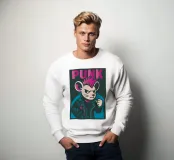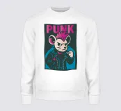 Illustrazione di un topo punk ribelle con mohawk rosa e giacca di pelle. Il motivo sfacciato simboleggia il punk, l'individualità e l'anticonformismo, ideale per gli appassionati di musica, lo stile street art e i design alternativi.