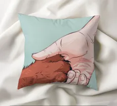Questa toccante opera d'arte raffigura una mano umana che stringe delicatamente la zampa di un cane, simboleggiando la fiducia reciproca e un legame sincero. Il primo piano cattura la profonda compagnia.