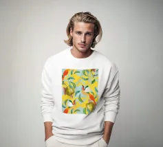Questo vivace motivo floreale è caratterizzato da un vivace sfondo giallo che conferisce calore ed energia al disegno. Elementi tropicali come tucani, ananas e fogliame rigoglioso creano un'atmosfera esotica e giocosa. I frutti vivaci, tra cui banane e papaie, si fondono magnificamente con il verde intenso delle foglie, mentre scimmie impertinenti si arrampicano sul disegno, aggiungendo un tocco stravagante. La combinazione di colori vivaci e motivi tropicali crea un'atmosfera divertente e avventurosa, perfetta per creare uno spazio vivace e allegro, pieno di bellezza naturale e fascino tropicale.