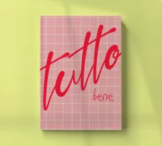 Ditelo con un sorriso: Tutto Bene! Questa frase italiana, calda e giocosa, prende vita in un disegno tipografico colorato e amichevole che irradia calma e gioia.