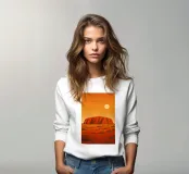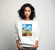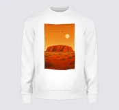 Design da viaggio minimalista per l'Australia con la famosa roccia (monolite di arenaria) Uluru nel "Red centre" australiano. Questo motivo tipico del paesaggio australiano è perfetto per tutti i viaggiatori che amano l'impressionante paesaggio australiano.