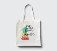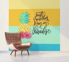 Bellissimo motivo colorato con ananas, fiori di ibisco e una fresca calligrafia a pennello. Una frase bella e stimolante. Estivo e tropicale. Un altro giorno in paradiso. Forse il motivo vi ricorderà le vostre vacanze. Alcuni prodotti (ad esempio la tenda da doccia, il telo da mare, l'asciugamano) presentano un motivo senza cuciture con frutti di ananas e fiori di ibisco, senza slogan.