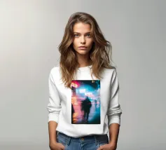 Luci soffuse, lampi di neon e una sfocatura artistica trasformano questa scena di caffè in un'opera piena di mistero e calore. Questo dipinto cattura un momento sospeso nel trambusto di New York, perfetto per un arredamento elegante e originale.