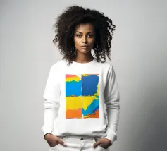Quest'opera d'arte presenta una vivace disposizione di colori tra cui blu, rosa, giallo e arancione. La luce naturale crea contrasti sorprendenti, esaltando la profondità testuale del dipinto.