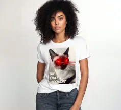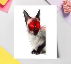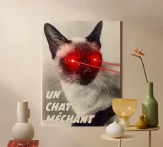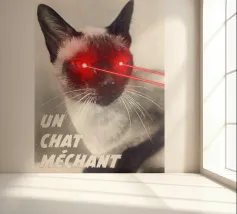 Un gatto malvagio! Foto trovata in bianco e nero di un gatto con superpoteri: spara laser rossi dagli occhi! Ed è francese, ovviamente. Vibrazioni da film horror vintage. Fotomontaggio digitale surreale e divertente di fantascienza, collage di MsGonzalez