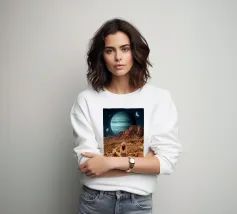 Entrate in un paesaggio da sogno fantascientifico mozzafiato dove mistero, potere e meraviglia si fondono. Cosmic Crystal Wanderer in a Violet Alien Universe raffigura un esploratore futuristico solitario in un vasto deserto extraterrestre, circondato da monoliti di cristallo rosa incandescente sotto un cielo notturno pieno di meteoriti. Massicci pianeti inanellati incombono sulle nostre teste, creando un'atmosfera cosmica surreale, ricca di profondità e immaginazione. I toni morbidi del viola e del porpora evocano un senso di magia, esplorazione e fantasia futuristica.
