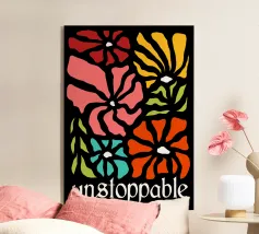 Se siete inarrestabili quando inseguite i vostri sogni e le vostre ambizioni, questo è il design giusto per voi. Fiori colorati astratti con vibrazioni estive e tipografia.