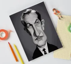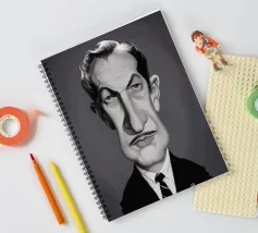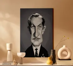 Illustrazione caricaturale umoristica del noto attore britannico di film horror e star del grande schermo Vincent Price. Una delle caricature realizzate per la serie Celebrity Sunday, in cui un personaggio famoso viene ritratto nell'arco di una giornata. L'idea è di mostrarli come in una fototessera per avere coerenza.