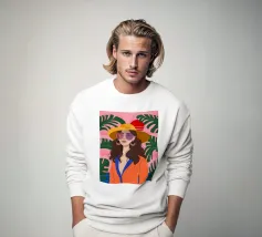 Audace ed elegante senza sforzo, questa illustrazione di moda di ispirazione rétro presenta una donna sicura di sé con capelli ricci, occhiali da sole oversize e orecchini rossi di grande effetto. Creata con linee di schizzo espressive e accenti di colore moderno in verde menta, giallo caldo e rosa, l'opera d'arte fonde il glamour vintage con il minimalismo contemporaneo. Perfetto per gli amanti della moda, per i collezionisti d'arte o per chiunque sia alla ricerca di un pezzo forte per la propria casa o il proprio studio.