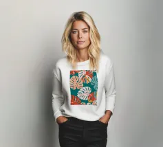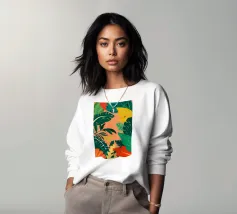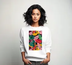 Un'audace e vibrante opera d'arte con fogliame tropicale ispirata allo stile iconico di Matisse, progettata come modello senza cuciture da stampare su prodotti come abbigliamento, poster, decorazioni per la casa e accessori, perfetta per aggiungere un'atmosfera tropicale colorata e artistica ai vostri articoli con questo design unico e accattivante!