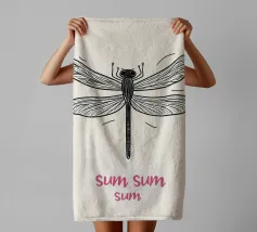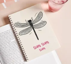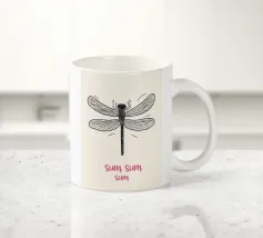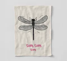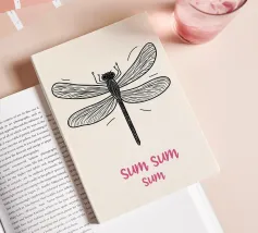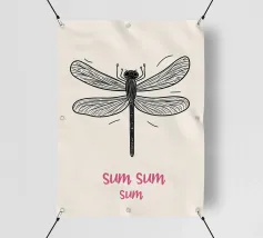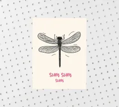 Questa allegra illustrazione di una libellula con l'arguto testo rosa "Sum Sum Sum" cattura la leggerezza e la giocosità della natura in modo minimalista.