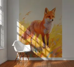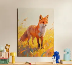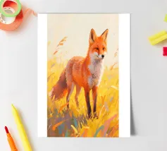 volpe in piedi nel prato con fauvismo pittura stile arte