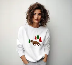 Godetevi una vivace illustrazione della fauna selvatica con una volpe in una foresta invernale con alberi innevati.