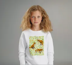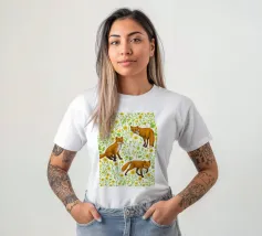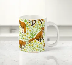 Motivo dipinto a mano con volpi rosse e ranuncoli