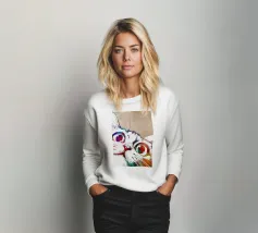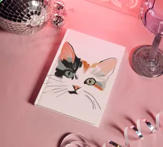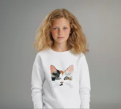 Elegante illustrazione del muso di un gatto intelligente, ideale per la stampa su prodotti come abbigliamento, borse, tazze e altro ancora. Aggiungete raffinatezza e fascino ai vostri articoli con questo grazioso disegno felino!
