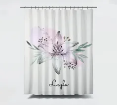 Bouquet acquerellato di fiori di lilium e foglie di eucalipto con nome personalizzabile