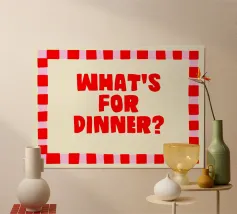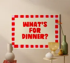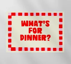 Un divertente disegno "Cosa c'è per cena?" che fa sorridere cucine e sale da pranzo. Giocoso e classico al tempo stesso, aggiunge un tocco di calore ai pasti in famiglia, alle cene notturne o alle riunioni informali intorno al tavolo.