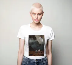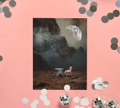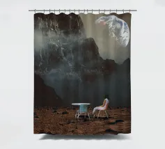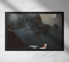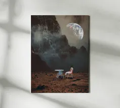 dove sei andato senza di me. ~ Una donna si trova da sola in un paesaggio simile a quello di Marte e guarda la Terra. vibrazioni retro futuristiche e toni terrosi