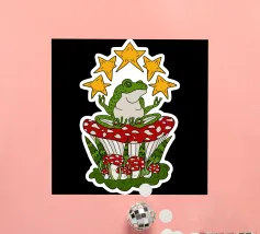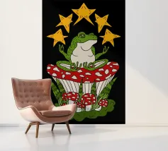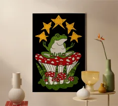 Rana zen seduta su un fungo rosso con stelle dorate. Ognuno ha la propria interpretazione di questo disegno, quindi lascio a voi la scelta. Ottimo regalo e decorazione per la parete del dormitorio o della camera da letto.