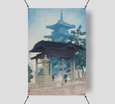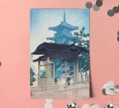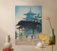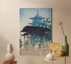 Zentsu-ji di Kawase Hasui offre una vista pacifica dello storico tempio Zentsu-ji, catturata con luci soffuse, ombre delicate e i dettagli atmosferici tipici di Hasui. La composizione mette in risalto la tranquilla bellezza del parco del tempio, fondendo l'architettura tradizionale con la calma della natura circostante per evocare un senso di riflessione e armonia. Ideale per gli amanti delle stampe giapponesi, dei paesaggi shin-hanga e delle tranquille scene spirituali, quest'opera d'arte conferisce eleganza, serenità e fascino culturale senza tempo a qualsiasi interno.