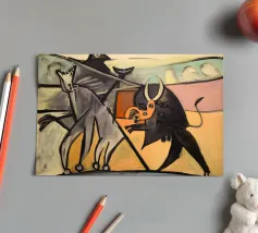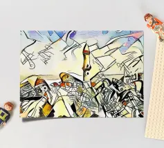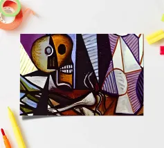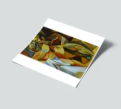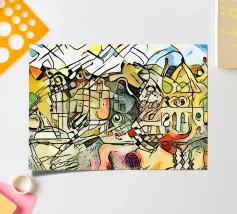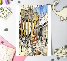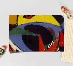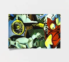 Questo dipinto astratto vibrante ed energico presenta un gioco dinamico di forme frammentate e linee audaci, con una ricca tavolozza di arancioni, gialli, viola e blu. La composizione suggerisce elementi decostruiti, forse figure o oggetti, in un movimento vorticoso ed energico, caratteristico delle influenze cubiste ed espressioniste astratte. I dettagli intricati e i colori contrastanti creano un'esperienza visiva accattivante e stimolante. Questo poster digitale di alta qualità (7000x5000 pixel, 300 dpi) cattura magnificamente l'energia grezza e il genio artistico dell'originale, ma