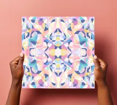 Stampa d'arte di un motivo decorativo colorato. Poster d'arte mandala simmetrico multicolore. Vibrazioni artistiche spirituali e gioiose. Buone vibrazioni e colori amorevoli. Disegno geometrico astratto, composizione moderna e vibrante, un gioco di simmetria e minimalismo. #AestheticDecor, ModernHomeStyle, ElegantInteriors, WallArtDesign, CozyVibes, PastelInteriors, StylishSpaces, ArtForInteriors, ChicRoomDecor, ContemporaryDecor
