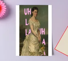 Celebrate il vostro legame indissolubile con "My Best Friend and I Are Better Than You", una spiritosa stampa pop art che unisce l'eleganza classica a una moderna e giocosa dichiarazione di amicizia. Questa accattivante opera d'arte raffigura due serene figure storiche, elegantemente posate su un lussuoso divano, apparentemente impegnate in un libro. Il testo in grassetto, di colore rosa caldo, "IL MIO MIGLIOR AMICO ED IO SONO MEGLIO DI TE" si sovrappone all'immagine, trasformando la scena senza tempo in un'ironica e sicura dichiarazione di esclusività. Perfetto per aggiungere personalità e un tocco di fascino spensierato a qualsiasi spazio contemporaneo. Realizzato ad un