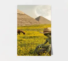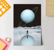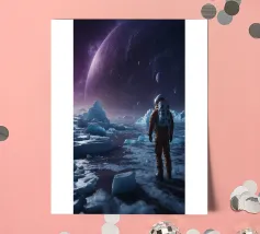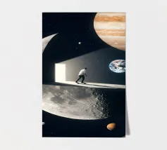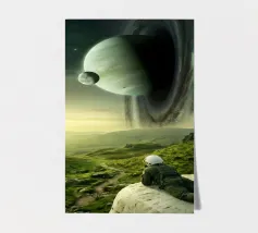 Una visione surreale e mozzafiato in cui l'immaginazione sfida la gravità. Running Beneath Saturn raffigura una figura solitaria che attraversa un paesaggio ghiacciato simile a uno specchio, che riflette perfettamente l'enorme pianeta ad anelli sospeso in un cielo pieno di stelle. Le montagne innevate si estendono all'orizzonte, accentuando il senso di scala, silenzio e meraviglia cosmica. Questa onirica opera d'arte spaziale fonde surrealismo, estetica fantascientifica e narrazione emotiva, simboleggiando libertà, curiosità ed esplorazione. Ideale per gli appassionati di arte cosmica, scene surreali minimaliste e illustrazione digitale moderna, questo disegno aggiunge profondità.