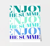 Bellissimo motivo tipografico per le calde giornate estive. Lettere dalla forma estetica e discreta che rappresentano l'affermazione "Enjoy the summer". Colori del mare molto armoniosi. Le vibrazioni della spiaggia si fanno sentire.