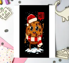 Un allegro biscotto con un cappello da Babbo Natale è circondato da decorazioni festive, libri e cioccolata calda. La scritta "Insegno ai biscotti più intelligenti #tistheseason" aggiunge un messaggio giocoso e a tema natalizio.
