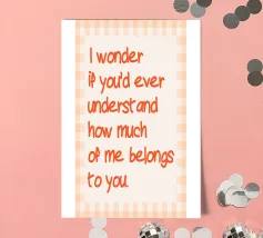 Una poesia visiva di colori ed emozioni: fiori rossi brillanti su uno sfondo verde lussureggiante fanno da sfondo alla scritta bianca "If I had a flower for everytime I thought of you" (Se avessi un fiore per ogni volta che ho pensato a te), una frase che oscilla come un pensiero silenzioso tra nostalgia e affetto. La composizione vive del contrasto tra l'intensità floreale e la chiarezza tipografica. Sembra un momento catturato, personale e universale allo stesso tempo.