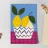 Una moderna natura morta di due pere gialle in una ciotola con un audace motivo a zig zag in bianco e nero. Lo sfondo a scacchi rosa e viola aggiunge un ulteriore livello di grafica giocosa alla composizione.