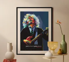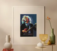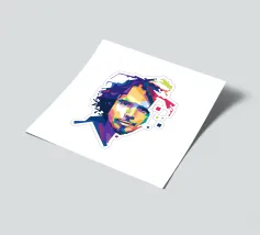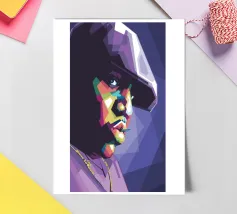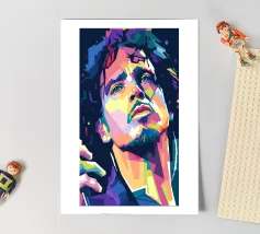 Un ritratto vibrante e geometrico di Sinead O'Connor in stile WPAP, caratterizzato da forme audaci e angolari e da un'impressionante gamma di colori vivaci e contrastanti. L'opera cattura i suoi tratti iconici, come la testa rasata, gli occhi penetranti e la forte espressione facciale, utilizzando blocchi di colore nitidi e frammentati. La composizione enfatizza la profondità e l'emozione mantenendo l'estetica pop-art cubista distintiva di WPAP, creando un tributo visivamente dinamico e moderno alla leggendaria cantante.
