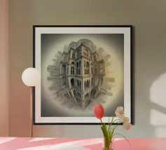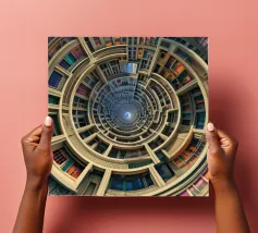 Una vista mozzafiato di una struttura architettonica circolare caratterizzata da motivi organici e fluenti e da tonalità vivaci. Il design unico fonde creatività e innovazione, offrendo un'esperienza visiva surreale con dettagli intricati e un luminoso cielo aperto.