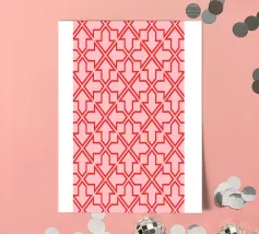 Quest'opera d'arte è un motivo a zig zag color pesca e corallo senza soluzione di continuità che unisce l'estetica moderna al fascino retrò. Le linee decise e il bellissimo corallo aggiungono un'atmosfera dinamica e fresca. Perfetto per chiunque voglia aggiungere un tocco di stile al proprio arredamento. Date un'occhiata e date un tocco di audace eleganza al vostro spazio!