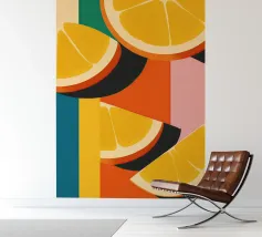 A graphic, pop art style pattern of orange slices against a dark blue background. The composition is modern, vibrant, and a fresh, zesty, and stylish design.