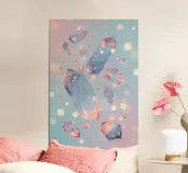 Cristalli galleggianti con sfondo bokeh carta hahnemühle