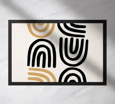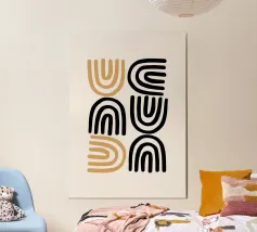Esplorate l'astrazione geometrica minimalista con questa sorprendente stampa grafica ispirata alla Bauhaus. Caratterizzata da un'accattivante composizione di forme geometriche a forma di U o di arco in colori decisi (marrone/arancione e nero), disposte in un ritmico schema verticale. Quest'opera d'arte incarna i principi della forma astratta, del colore e della composizione, con un'atmosfera contemporanea influenzata dal movimento Bauhaus, che mette in risalto il potere di semplici elementi geometrici ripetuti e del contrasto cromatico. Questo file di arte digitale di alta qualità vanta una straordinaria risoluzione di 7000x5000 pixel a 300 dpi, che garantisce dettagli eccezionali e chiarezza.