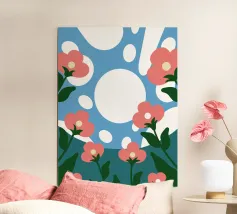 Un'illustrazione che presenta un motivo a foglie con uno stile semplice, utilizzando i colori rosa, bianco e marrone. Questa illustrazione offre un aspetto fresco e moderno.