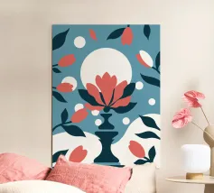 Un'illustrazione che presenta un motivo a foglie con uno stile semplice, utilizzando i colori rosa, bianco e marrone. Questa illustrazione offre un aspetto fresco e moderno.