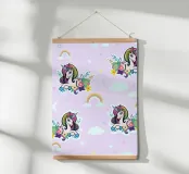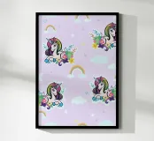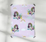 Modello di unicorno con fiori sfondo lilla carta hahnemühle