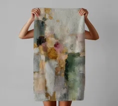 This abstract natural artwork combines soft pastel shades of pink, orange, light grey and petrol to create a harmonious composition of organic shapes and fine structures. Delicate brushstrokes and subtle textures create a calm, almost dreamy atmosphere. Ideal for modern rooms looking for a balance of naturalness, lightness and artistic expression.