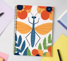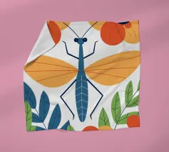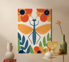 In questa illustrazione, la bellezza di una libellula blu che volteggia tra fiori luminosi. I colori vivaci e il disegno dettagliato creano un'atmosfera vivace e accattivante.