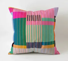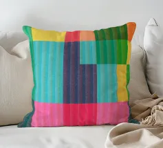 Questa suggestiva opera d'arte astratta, "Vibrant Spectrum", cattura un gioco dinamico di colori e movimento. Linee verticali di larghezza variabile in una ricca tavolozza di blu intensi, arancioni infuocati, rosa brillanti e gialli tenui creano una trama ritmica, quasi intrecciata. Audaci e gestuali tratti neri attraversano la tela, interrompendo le linee ordinate e aggiungendo un elemento di energia grezza e spontaneità. Questo pezzo è una dichiarazione moderna e sofisticata, perfetta per aggiungere un tocco di colore e interesse visivo a qualsiasi spazio abitativo contemporaneo, ufficio o parete della galleria.