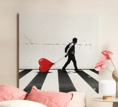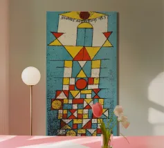 This highly abstract tapestry by Fernand Léger showcases his characteristic use of strong black outlines and bold primary and secondary colors. The composition features thick, winding forms reminiscent of a treble clef or musical notation, set against blocks of color and white brick-like patterns. The work reflects Léger's lifelong exploration of pure form and color.
