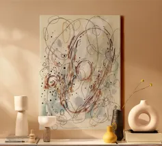 Una vibrante composizione a tecnica mista in cui convergono forme fluide e colori vivaci. Intersecting Forms" cattura il momento in cui elementi contrastanti si incontrano, con forme stratificate che creano un senso di equilibrio e armonia astratta.