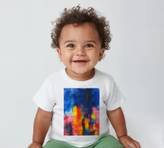 Le vibranti tonalità di rosa, blu e turchese si fondono in un vivace disegno astratto, creando un senso di movimento ed energia. I tratti audaci e i colori stratificati evocano un'atmosfera dinamica ed espressiva.