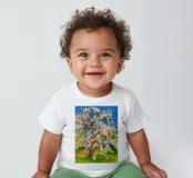 Un magnifico albero è ricoperto da una profusione di fiori bianchi o color avorio, i cui rami creano un bellissimo disegno intricato contro un cielo blu brillante, celebrando il culmine della primavera.